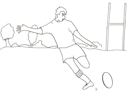 Giocatore di rugby da colorare Disegno di un giocatore di rugby che sta tirando un calcio alla palla ovale, da stampare e colorare, per tutti i maschietti appassionati di sport e di rugby. Cliccare sul disegno per stamparlo: