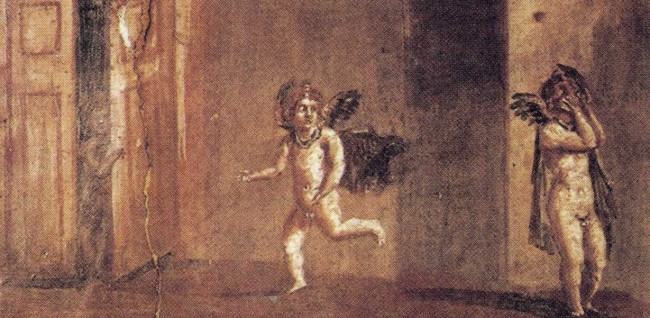 Per esempio prendiamo il gioco “nascondino”: a[ppw id=”125865722″ description=”agosto 2017″ price=”0″] Ercolano (in Campania), la città che secondo la leggenda fu fondata da Ercole e che è stata distrutta dall’eruzione del Vesuvio del 1979, gli scavi archeologici hanno riportato alla luce un affresco in cui si vede un bambino che “sta sotto“ con le mani sul volto a chiudere gli occhi mentre un altro corre a cercare un nascondiglio e un altro ancora richiude la porta dietro la quale si nasconde. Non ci possono essere dubbi: i tre bimbetti giocavano a nascondino!