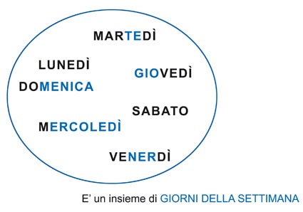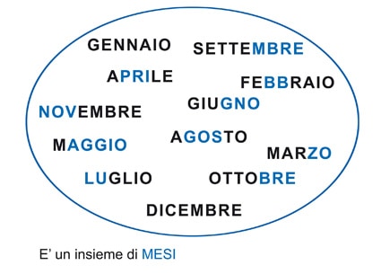 Gioco con gli insiemi, li definisco ed aggiungo gli elementi mancanti. Una scheda per i bambini di prima elementare, per divertirsi a trovare una relazione tra gli elementi inclusi in ogni insieme ed esercitarsi nell’ortografia.