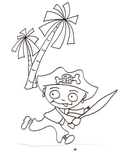 Giovane pirata da colorare Disegno di un giovane pirata che corre, spada in pugno, sull’isola del tesoro. Cosa o chi starà inseguendo? Cliccare sul disegno per stamparlo: