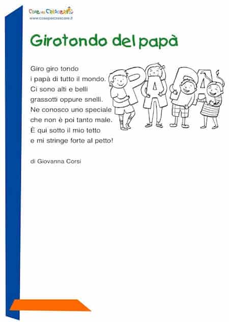 Una filastrocca per il papà, facile facile da imparare e adatta ai bambini che frequentano la scuola dell’infanzia. Una filastrocca scritta da Giovanna Corsi che i bambini potranno dedicare al papà il giorno del suo compleanno, il 19 marzo per la Festa del papà o semplicemente per dirgli quanto è importante.