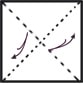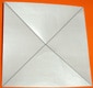 - Piegare ed aprire il foglio lungo la diagonale. Ruotare il foglio, piegarlo nuovamente lungo l’altra diagonale e riaprirlo.