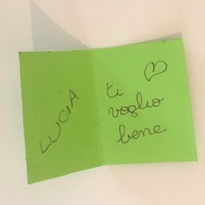 - Chiedere a ogni bambina e a ogni bambino della classe di scrivere un pensiero da dedicare alla maestra su un foglietto di carta colorata (a sua scelta) e scrivere il proprio nome. I più piccoli possono fare un disegno. Piegare tutti i foglietti.
