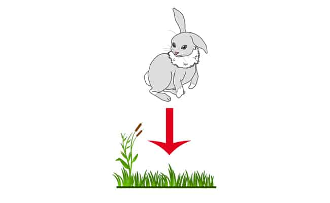 I consumatori primari fanno parte del primo anello della catena alimentare. Per capire meglio, osserviamo questo schema: il coniglio (consumatore primario) mangia l’erba (produttore).