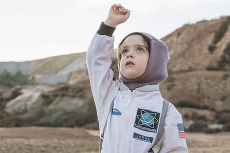 Per il vestito da astronauta, ci siamo a divertiti a osservare le targhette che sono sulle tute degli astronauti, a disegnarle su fogli di carta adesivi e appiccicarli su una tuta bianca. Un passamontagna in aggiunta ed eccoci pronti a esplorare lo spazio!