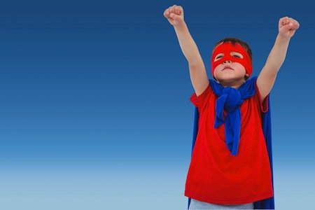 Il vestito da supereroe si può fare facilmente con una base fatta con abiti aderenti (ad esempio maglietta lunga e calzamaglia) del colore giusto, un mantello fatto con un grande pezzo di stoffa (ci sono molti tutorial in rete) e ovviamente… una maschera da supereroe!