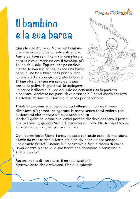Il bambino e la sua barca è una storia sull’estate e il mare da raccontare ai bambini o leggere insieme. Un racconto adatto sia ai bambini della scuola primaria sia ai bambini più piccoli della scuola dell’infanzia. Come per tutte le storie che pubblichiamo, proponiamo sia la versione da leggere online sia una versione da stampare gratuitamente, illustrata con un disegno da colorare. Per stampare la storia, scorri la pagina verso il basso e segui le istruzioni: si aprirà una seconda finestra con la storia per bambini in versione pdf pronta per essere stampata e/o scaricata.