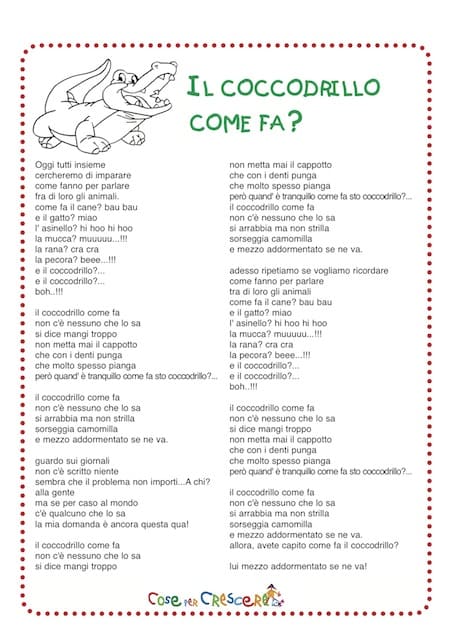 Il coccodrillo come fa canzone e testo è perfetta per sviluppare: