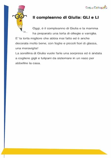 Oggi, è il compleanno di Giulia e la mamma ha preparato una torta di ciliegie e vaniglia. E’ la torta migliore che abbia mai fatto ed è anche decorata molto bene, con foglie e piccoli fiori di glassa, una meraviglia! La sorellina di Giulia vuole farle una sorpresa ed è andata a cogliere gigli e tulipani da sistemare in un vaso per abbellire la casa.