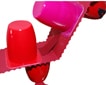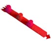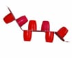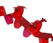 - Incollare la base della cresta su una delle estremità della fascia rossa. Incollare la coda/freccia sull’altra estremità. Incollare un primo vasetto, il vasetto “testa”, attaccato alla cresta e il vasetto successivo a una distanza di circa 6 cm dal primo in modo da lasciare uno spazio per incollare le zampe. Incollare un terzo vasetto, sempre a 6 cm dal precedente. Questi due vasetti saranno i vasetti “zampe”.