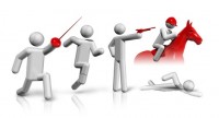 Scherma: gli atleti si affrontano con la spada ed ogni giocatore deve competere con tutti gli avversari. Ogni assalto dura un minuto ed il vincitore è l’atleta che per primo mette a fondo una stoccata.