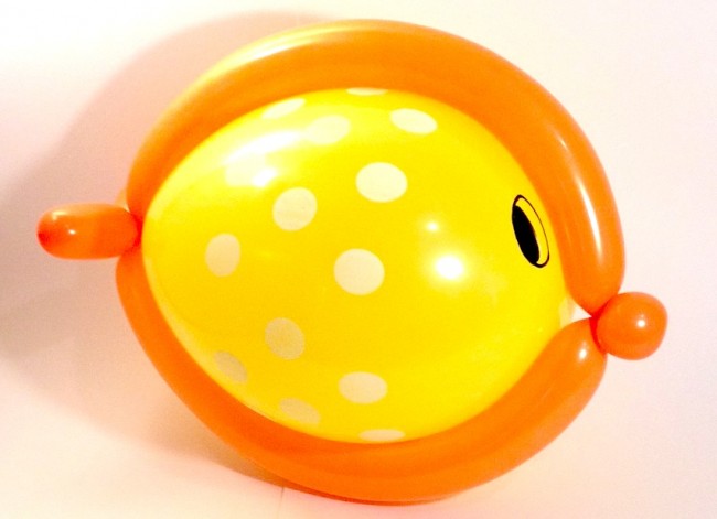 - Chiudere il palloncino con una torsione lasciando circa 10 cm per ogni estremità (sarà la coda).
