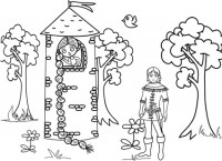 Il principe di Raperonzolo: disegno da colorare Disegno del principe innamorato di Raperonzolo che, arrivato sotto la grande torre dove è rinchiusa la ragazza, si appresta a salire usando la lunghissima treccia che Raperonzolo ha mandato fino giù. Cliccare sul disegno per stampare: