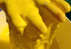 - Dipingere le sagome più grandi senza diluire la pittura, sarà più coprente. Lasciare asciugare. Molto probabilmente, alcuni particolari disegnati a matita scompariranno e dovranno essere ridisegnati quando il colore sarà asciutto. Disegnandoli una prima volta, il bambino avrà avuto modo di organizzare e visualizzare il disegno completo del personaggio che vuole creare.