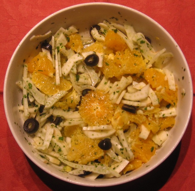 Questa insalata, molto particolare, è molto gustosa, facile da fare e di grande effetto. L’insalata di arance e finocchi è perfetta per essere servita come antipasto e ha il vantaggio di dover essere preparata un po’ in anticipo per permettere ai diversi sapori degli ingredienti di amalgamarsi.