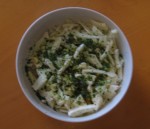 Sbucciate lo scalogno e lavate il prezzemolo. Tritate finemente scalogno e prezzemolo. Cospargete il trito sull’insalata.