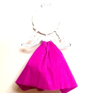 - Ritagliare un rettangolo di carta crespa di circa 31 cm x 11 cm. Avvolgerlo intorno alla vita della sagoma in modo da formare una gonna vaporosa. Fissare la gonna con la pinzatrice (o con un pezzetto di nastro adesivo).