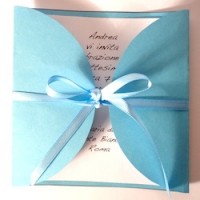 - Inserire il cartoncino con il testo all’interno del biglietto e chiudere con il nastro di raso ed un bel fiocco!