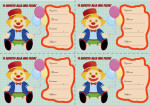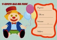 Un invito per bambini, tenero e pronto da stampare. Un biglietto con un tenero pagliaccio per invitare gli amici alla propria festa. I biglietti sono solo da stampare, ritagliare e compilare. Se il piccolo festeggiato (o la piccola festeggiata) ha giĂ imparato a scrivere, chiedetegli di compilare i biglietti, ne sarĂ orgoglioso!