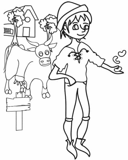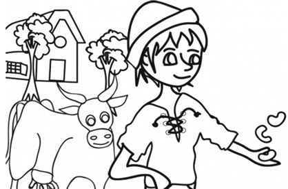 Jack ha venduto la mucca: disegno da colorare Disegno di Jack e il fagiolo magico da stampare e colorare. Jack ha appena venduto la sua mucca, scambiandola, però, con un pugno di fagioli colorati… Cliccare sul disegno per stamparlo: