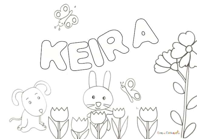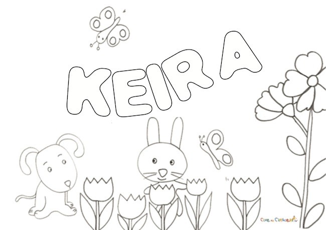 Disegno del nome KEIRA pronto da stampare e da dare alla vostra bimba da colorare, per divertirsi con il proprio nome ed impararne i caratteri.
