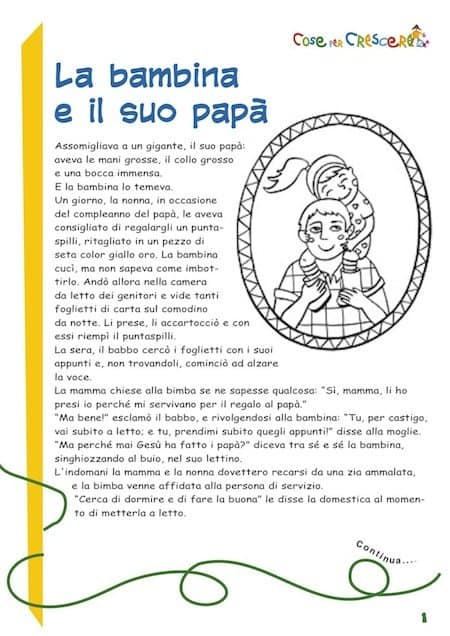 “Ma bene!” esclamò il babbo, e rivolgendosi alla bambina: “Tu, per castigo, vai subito a letto; e tu, prendimi subito quegli appunti!” disse alla moglie.