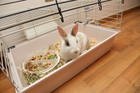 - 1 cassettina da riempire con segatura o sabbietta per gatti dove il coniglio nano potrà fare i suoi bisogni, da pulire quotidianamente;