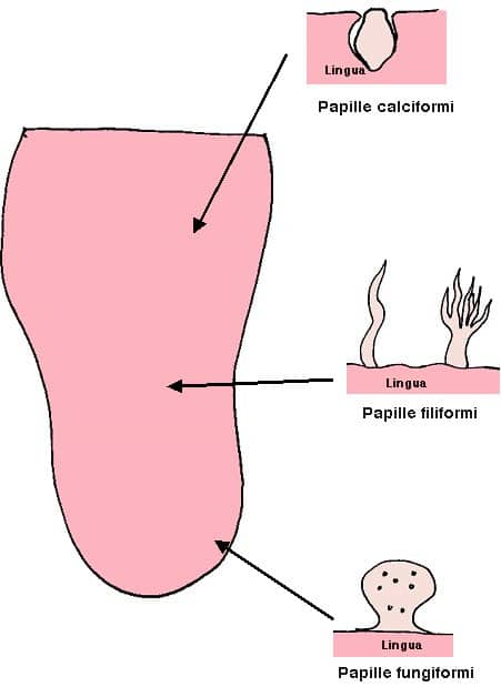 Le papille gustative sono posizionate in modo specifico sulla lingua.
