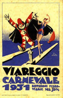 La prima apparizione di Burlamacco è stata sul manifesto del Carnevale 1931. Ritratto mentre giunge dal mare, camminando sui moli paralleli di Viareggio, ha al suo fianco una fanciulla, con il nome di Ondina, immagine solare dell’estate da trascorrere sulle spiagge viareggine. Con costume tipico della moda degli anni Trenta è l’emblema della stagione balneare, dell’estate, della Viareggio vacanziera. Insieme le due figure sono icone delle due stagioni della città di Viareggio: l’estate e il Carnevale.