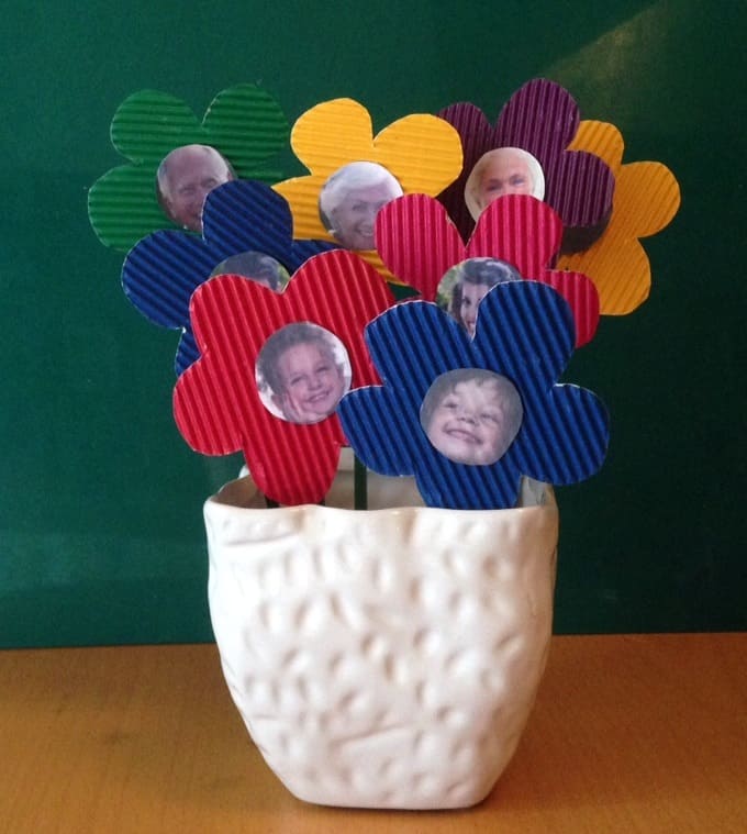 Importante: abbiamo usato un vaso di circa 10 cm di diametro. Se ne usate uno più grande o più piccolo, ricordatevi di adattare le misure dei fiori e delle fotografie.