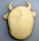 - Impastare e lavorare un pò di pasta di sale per creare la testa della mucca. Quando la pasta di sale sarà sufficientemente morbida, formare una pallina e appiattirla leggermente.