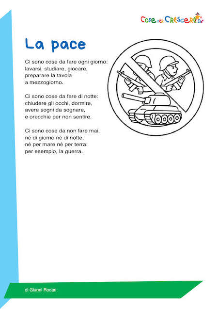 Poesia collettiva: partendo dallo stile di Rodari, costruite insieme una nuova poesia con le azioni di pace che si possono fare ogni giorno.