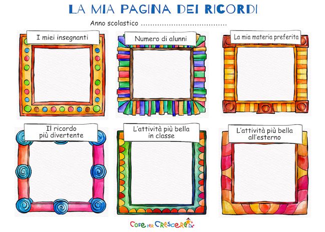 - A casa: Inviate la pagina a casa come compito finale dell’anno scolastico. I genitori possono aiutare i bambini a completarla e magari aggiungere qualche foto.