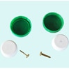 4 tappi di plastica (2 più grandi colorati e 2 bianchi più piccoli)