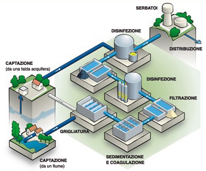 Prima di arrivare ai nostri rubinetti l’acqua deve passare attraverso un processo di trattamenti che servono a: