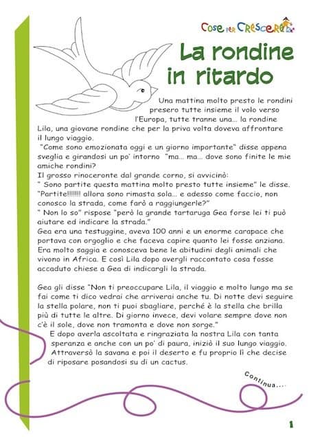 “Io mi chiamo Lila e sto cercando dì raggiungere le mie amiche rondini.”