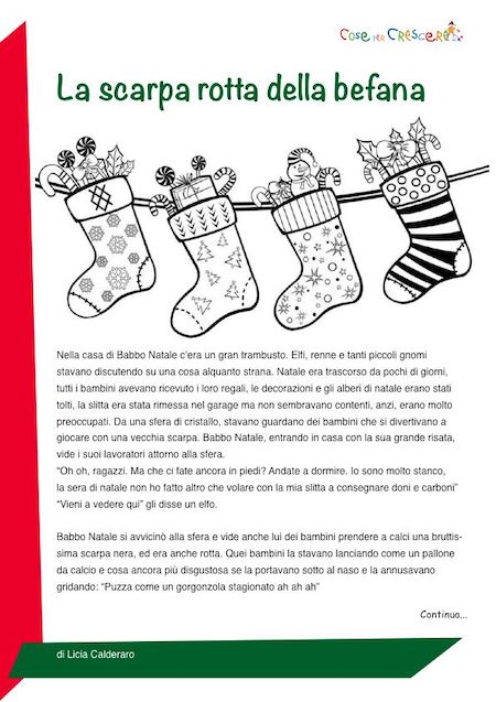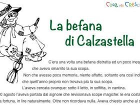 La scarpa rotta della Befana è un bel racconto per bambini scritto da Licia Calderaro. Una storia sulla Befana divertente che ho trovato navigando sul web e che proponiamo da leggere online o in una versione illustrata con un disegno da colorare e da stampare gratuitamente (scorri la pagina verso il basso e segui le istruzioni). Una storia adatta ai bambini della scuola primaria e a quelli più piccoli che frequentano la scuola dell’infanzia.