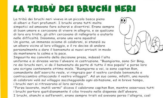 E da quel giorno la tribù dei bruchi neri capì che l’intelligenza e l’astuzia prevalgono sempre sulla forza sciocca e pretenziosa!