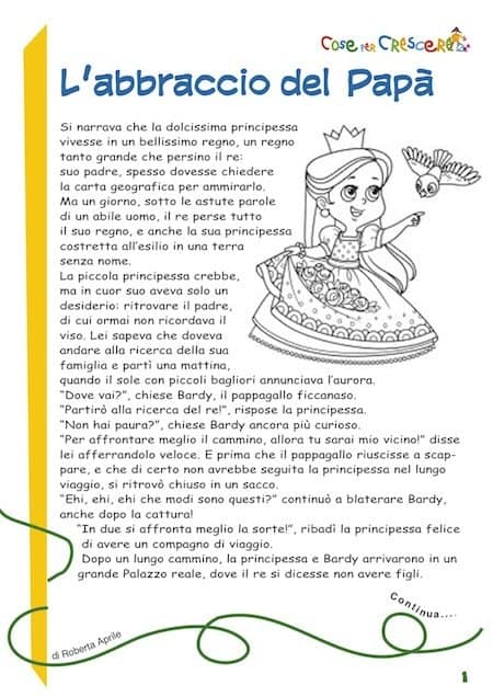 Per stampare la storia illustrata con un disegno da colorare, scorri la pagina verso il basso e clicca sull’immagine dove segnato: si aprirà una seconda finestra con la storia per bambini in formato pdf, pronta per essere scaricata e/o direttamente stampata.
