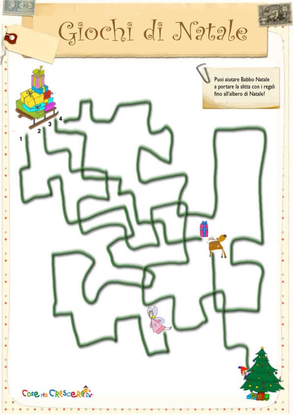 Labirinto dei regali di Natale Un gioco del labirinto per aiutare Babbo Natale a portare la slitta con tutti i regali fino all’albero di Natale. Un gioco per bambini di Natale da stampare gratuitamente per divertirsi durante il periodo di Natale. STAMPA IL LABIRINTO DI NATALE Cliccare sull’immagine per stamparla:
