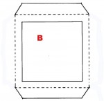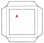 • Con un taglierino (ATTENZIONE, meglio non farlo fare al bambino se piccolo), ritagliare e “svuotare” il quadrato centrale delle 4 parti corrispondenti alle sagome A e B. Il quadrato che avanza, la sagoma C, sarà il fondo della lanterna.