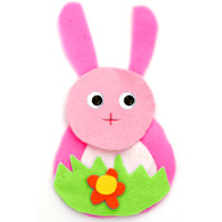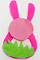 - Disegnare e ritagliare due lunghe orecchie nel pannolenci rosa scuro.Disegnare e ritagliare due tondi bianchi e due tondini neri più piccoli per fare gli occhi.