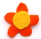- Ritagliare un quadrato arancione. Disegnarci un fiore e ritagliarlo. Ritagliare un tondo giallo più piccolo e incollarlo al centro del fiore.