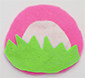 - Ritagliare un rettangolo di 6 cm x 7 cm nel pannolenci rosa chiaro. Ritagliarci un cerchio leggermente piatto (non esattamente tondo ma un pò più largo che alto).