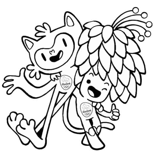Vinicius e Tom, rispettivamente mascotte delle Olimpiadi e Paralimpiadi di Rio 2016, da stampare e colorare. Vinicius è un felino giallo che rappresenta tutti gli animali che vivono intorno alla città di Rio de Janeiro mentre Tom è un albero verde-azzurro simbolo delle numerose piante e delle foreste che circondano la città. Un disegno da stampare e colorare gratuitamente!