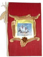 - Incollare un disegno o un’immagine natalizia al centro del rettangolo dorato. Creare una cornice incollando delle spezie intorno all’immagine.
