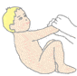 Sorreggete il bambino sotto le braccia e mettetelo in posizione eretta, piegherà le gambine e si appoggerà con tutto il suo peso sui piedini. Non riesce ancora a mantenere questa posizione, ma comincia ad apprezzarla.