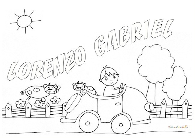Disegno del nome LORENZO GABRIEL pronto da stampare e da dare al vostro bimbo da colorare, per divertirsi con il proprio nome ed impararne i caratteri.