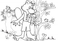 Disegno del lupo cattivo che inganna Cappuccetto Rosso. Quando incontra Cappuccetto Rosso nella foresta, il lupo si fa rivelare dalla bambina dove è diretta, la precede e, dopo aver mangiato la nonna ammalata si fa trovare nel letto, travestito da nonna. Riuscirà così a mangiare anche Cappuccetto Rosso. Ma, per fortuna, arriverà un taglialegna…