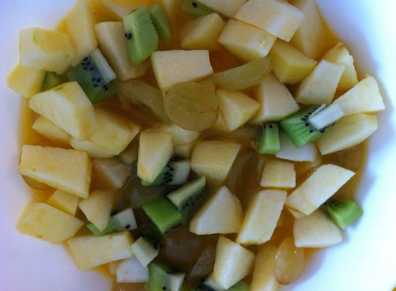 Questa macedonia può essere modificata per gli adulti, con l’aggiunta di un pò di rum, foglie di menta e uva sultanina.